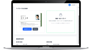 名刺画像をアップロードし、名刺に記載された情報から顧客情報を抽出し顧客としてデータ登録ができます。